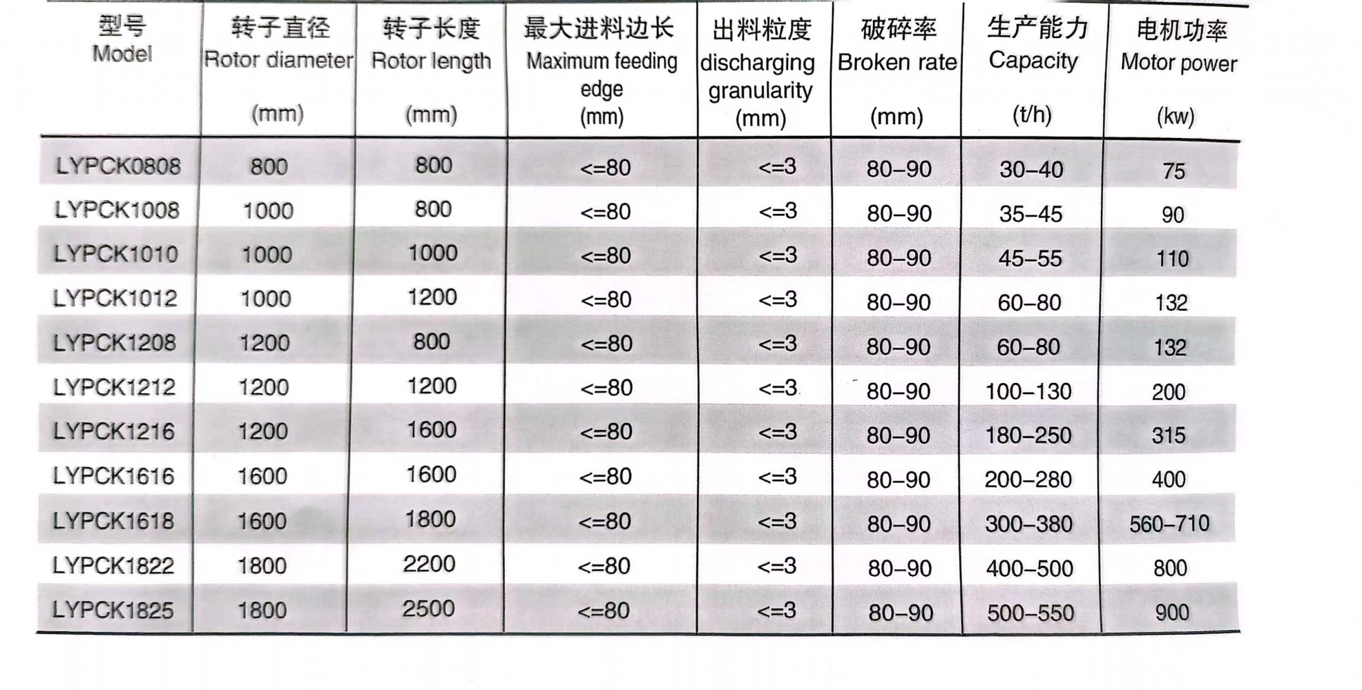 新型可逆式制砂機的多種型號